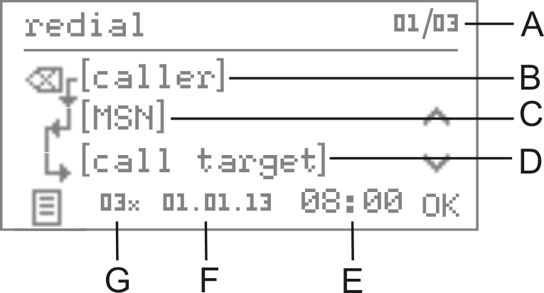 Pressing and holding the delete key (2 seconds) deletes the entire redial list.