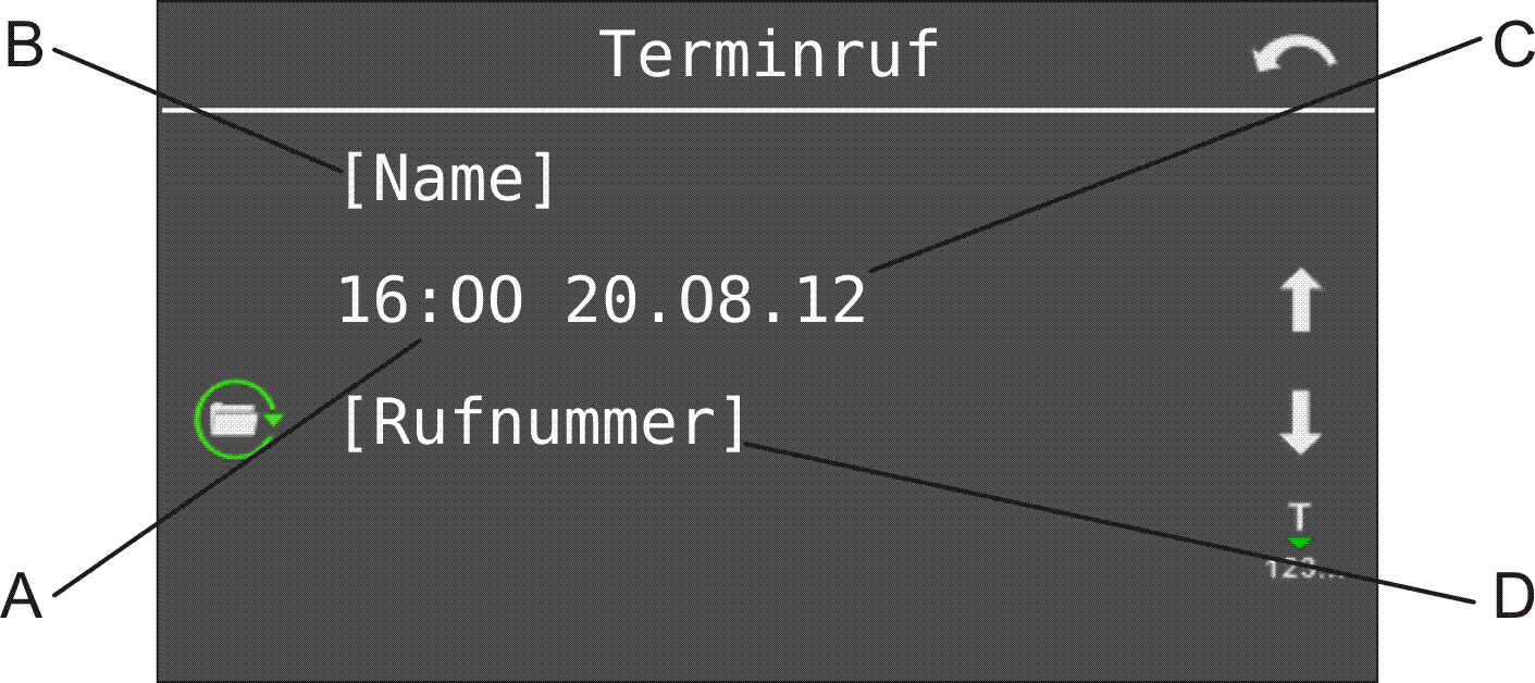 Die folgenden Informationen zum Termin werden im Display angezeigt: