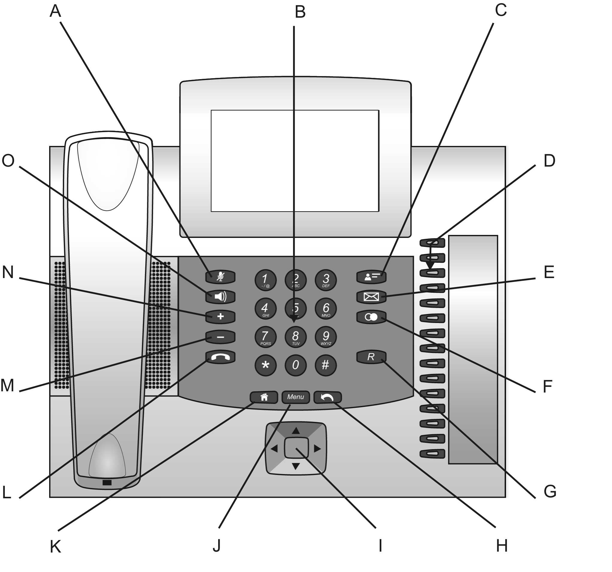 Ermöglicht die Navigation auf dem Display und somit die Bedienung desTelefons über Tasten.
