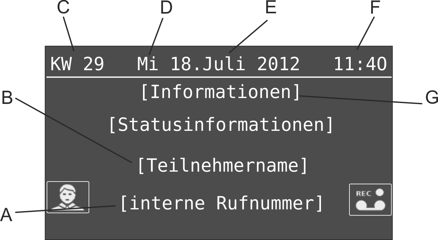 Hinweis: Zusätzlich zu den programmierbaren Funktionstasten mit LED rechts am Gerät können Sie bis zu 8 Touch-Funktionstasten im Ruhezustand des Displays einrichten. Touch-Funktionstasten sind durch Symbole links und rechts am Displayrand gekennzeichnet. Im Auslieferzustand sind diese bereits vorbelegt.