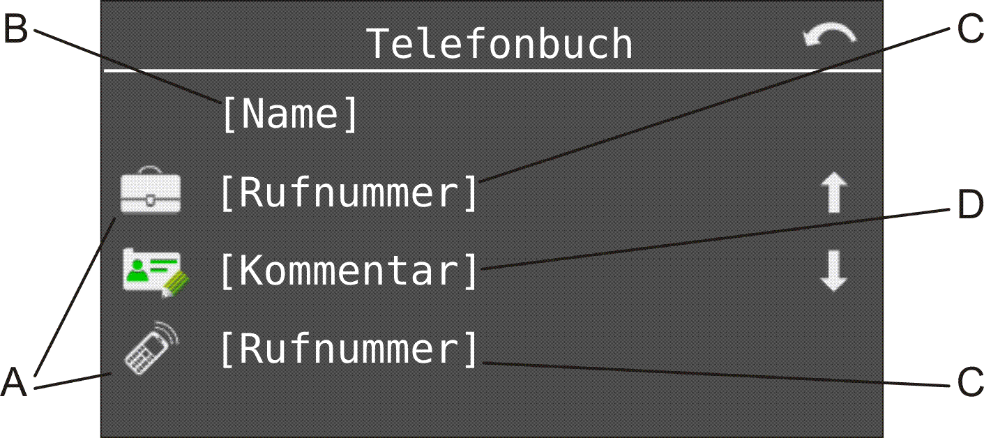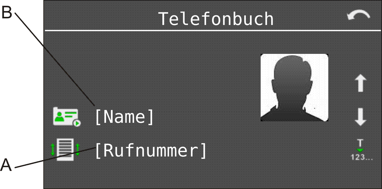 Hinweis: Ist ein dem Namen zugehöriges Bild auf einer SD-Karte im Telefon gespeichert, wird dieses im Display angezeigt (siehe Kapitel Telefonbuch und Listen > Telefonbuch > Bilder zum Telefonbuch hinzufügen). Ist dies nicht der Fall, wird das hier dargestellte Avatar-Bild im Display angezeigt.