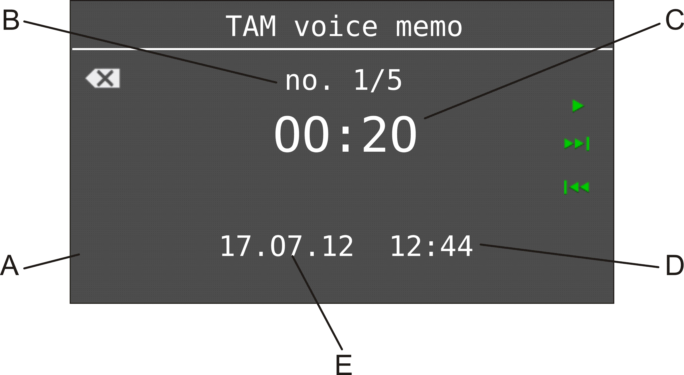 Select TAM voice memos to open the list of voice memos (this is skipped if the other lists are empty).