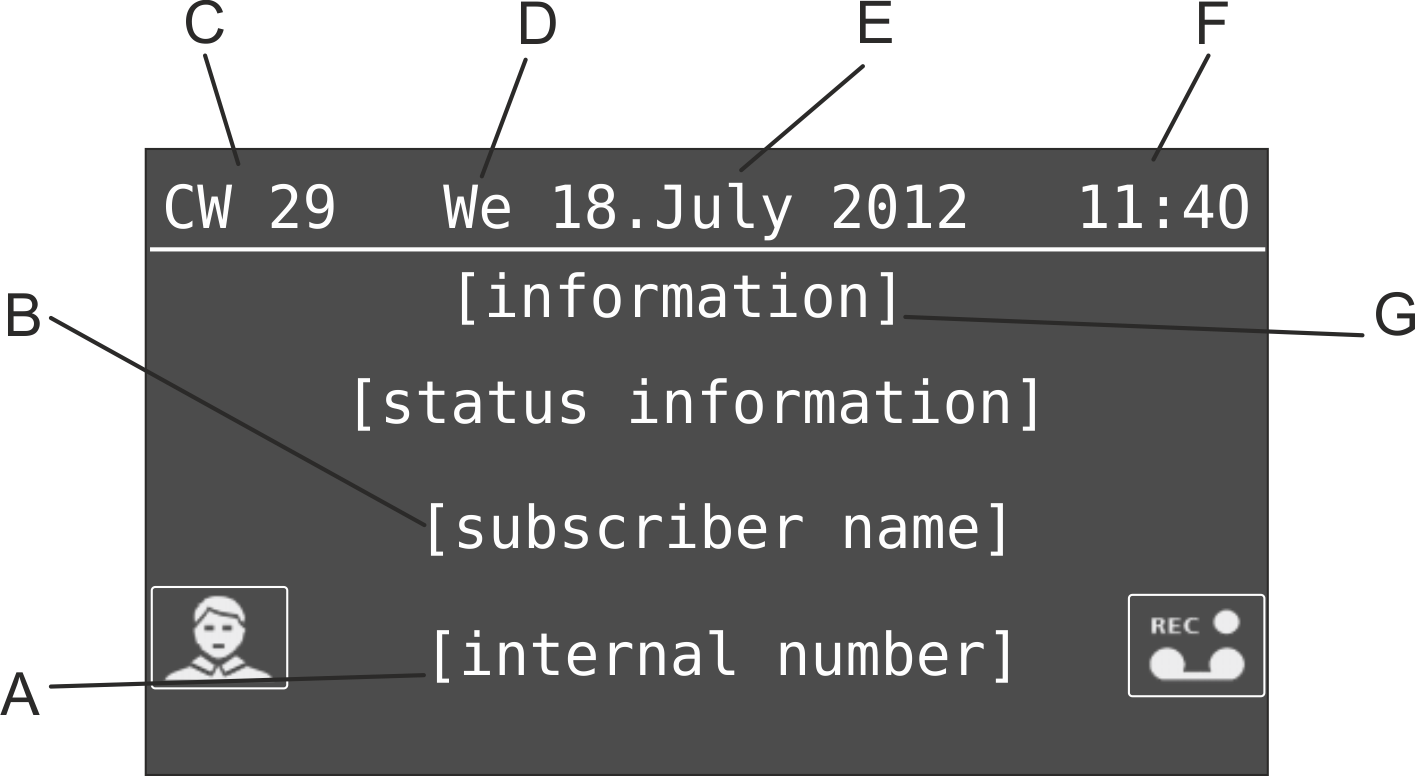 Note: In addition to the programmable function keys with LEDs on the right of the device you can create up to 8 touch function keys in the idle state of the device. Touch function keys are identified by symbols on the left- and right-hand sides of the display. They have already been assigned functions in the default settings.