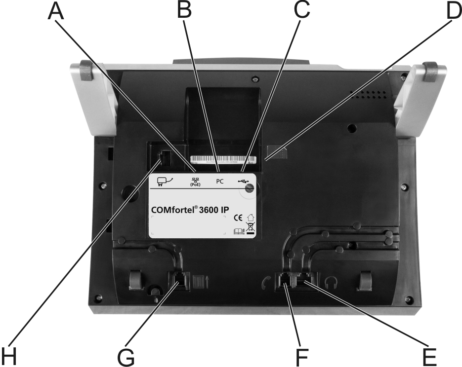 The next figure shows the connections on the bottom side of the COMfortel 3600 IP.