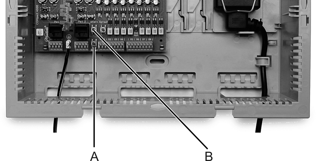 2.Within the space of two seconds, push the Altern. button on the COMpact 4000 interface board and hold it.