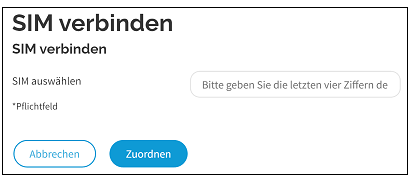 Wenn Sie einen COMuniq ONE Benutzer mit Mobiltelefon bestellt haben und die Option SIM Karte später verknüpfen und liefern gewählt haben, müssen Sie mit diesem Schritt fortfahren, um die Bestellung zu aktivieren.